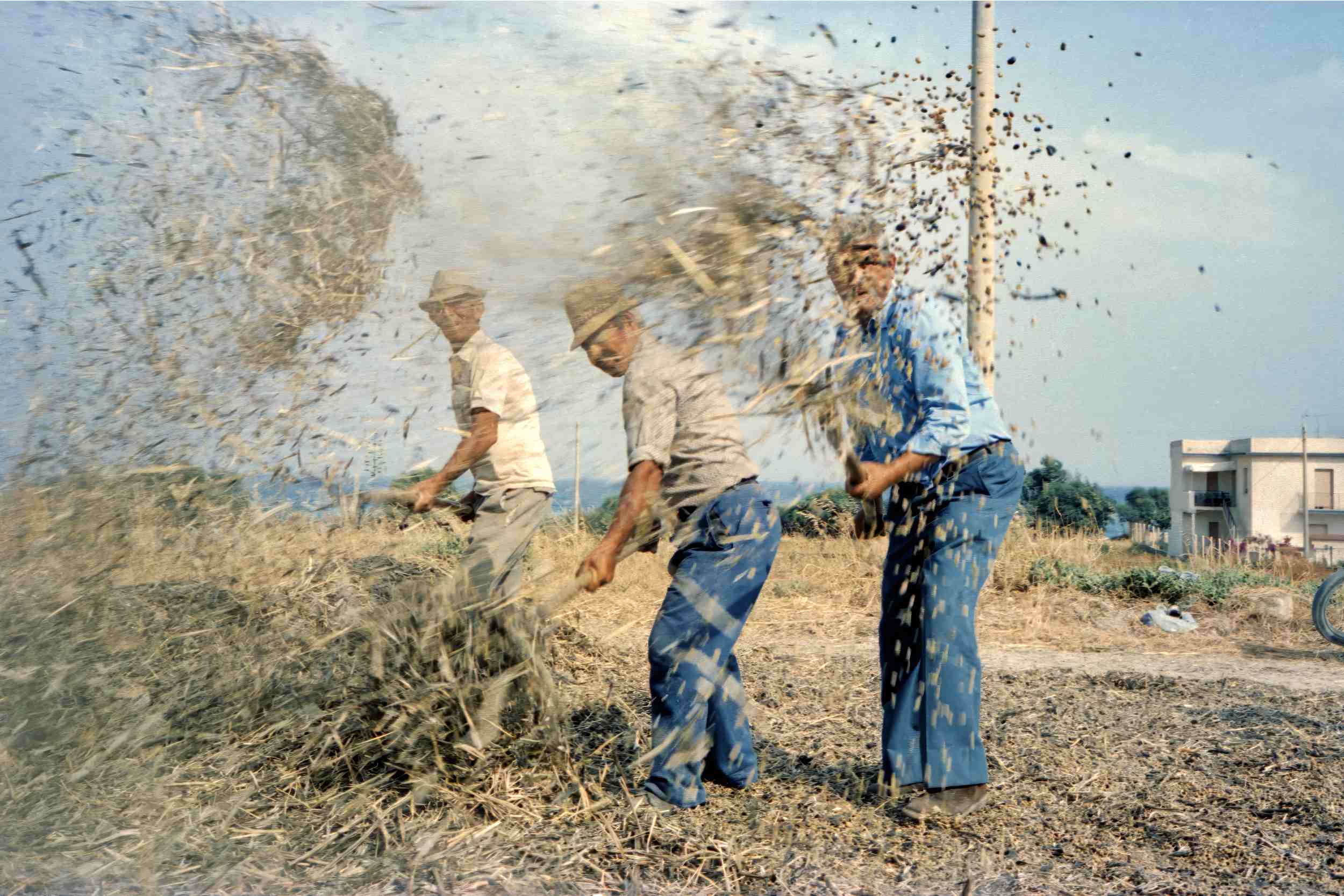 These photographs attempt to capture the essence of the ritual of winnowing—the age-old method of separating grain from chaff using the wind as a natural sieve. Once a common sight in Southern Italy, this process is now nearly forgotten. This sequence of images follows the rhythmic gestures, dust-laced air, and quiet dignity of those who practiced it. The scene speaks not only to labor but to tradition, identity, and necessity.